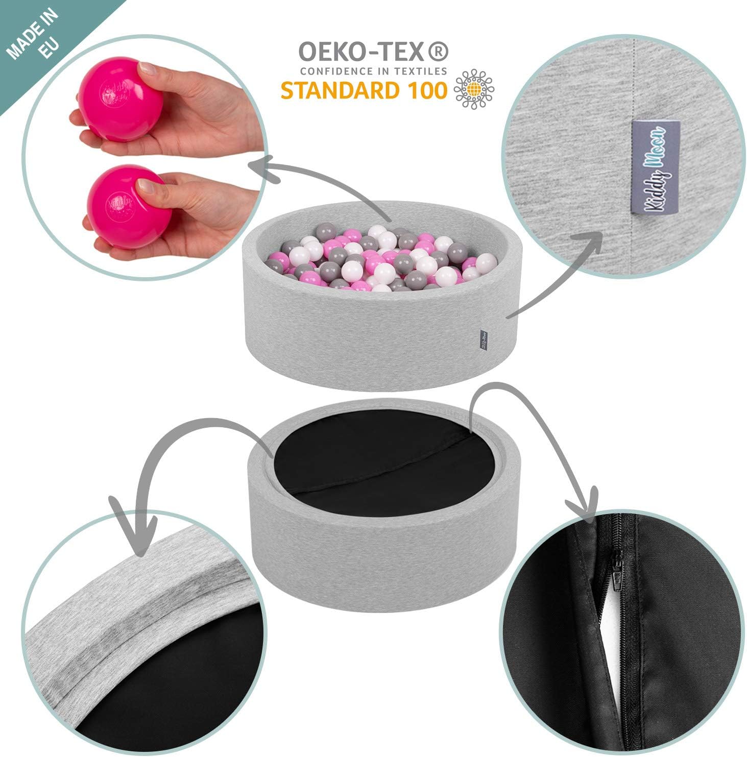 Le KiddyMoon Ball Pool est bien plus qu’un simple jouet. Destiné aux enfants dès 8 mois, il offre une expérience sensorielle enrichissante et amusante. Avec une conception sécuritaire et élégante, ce produit garantit des heures de plaisir pour les tout-petits sous la surveillance parentale.