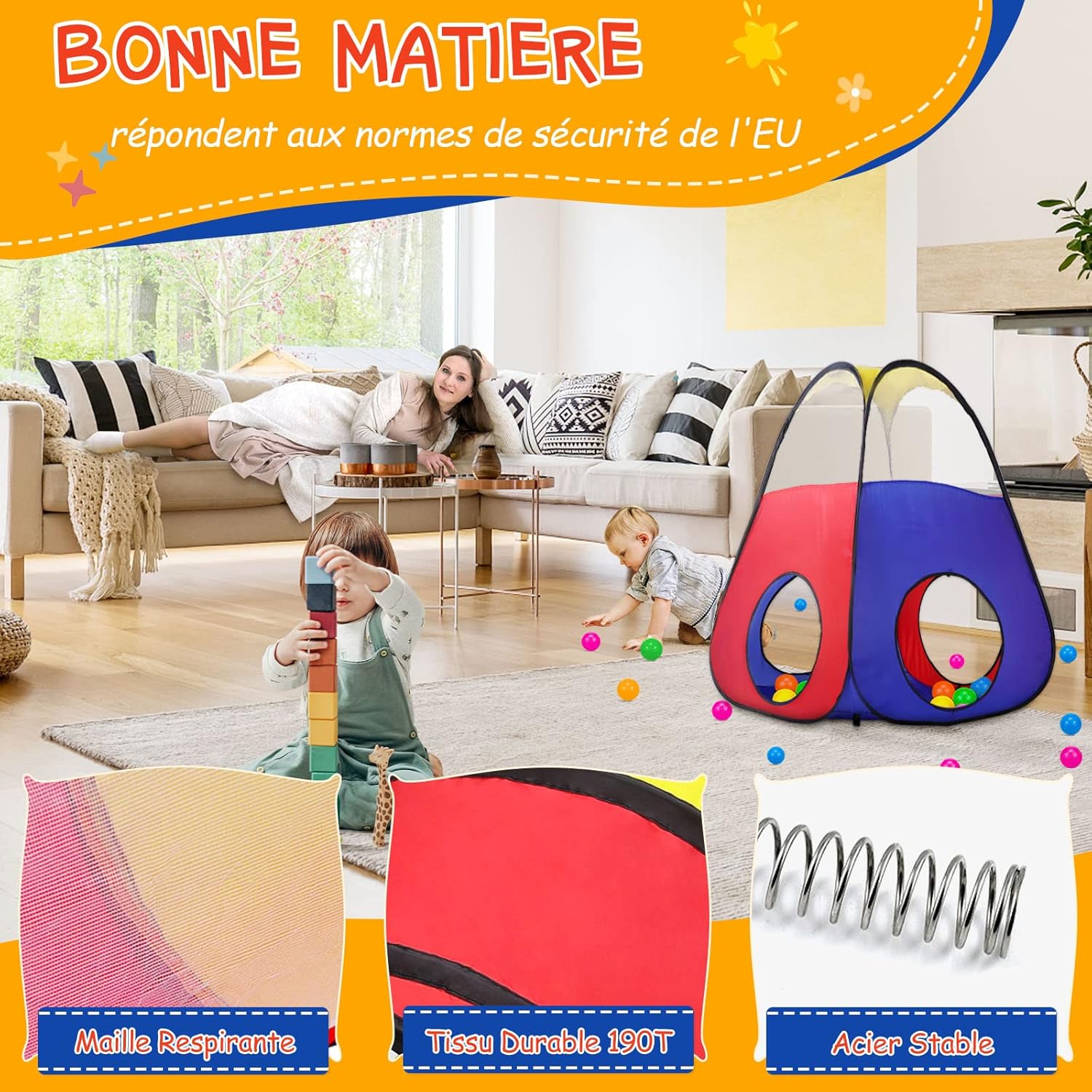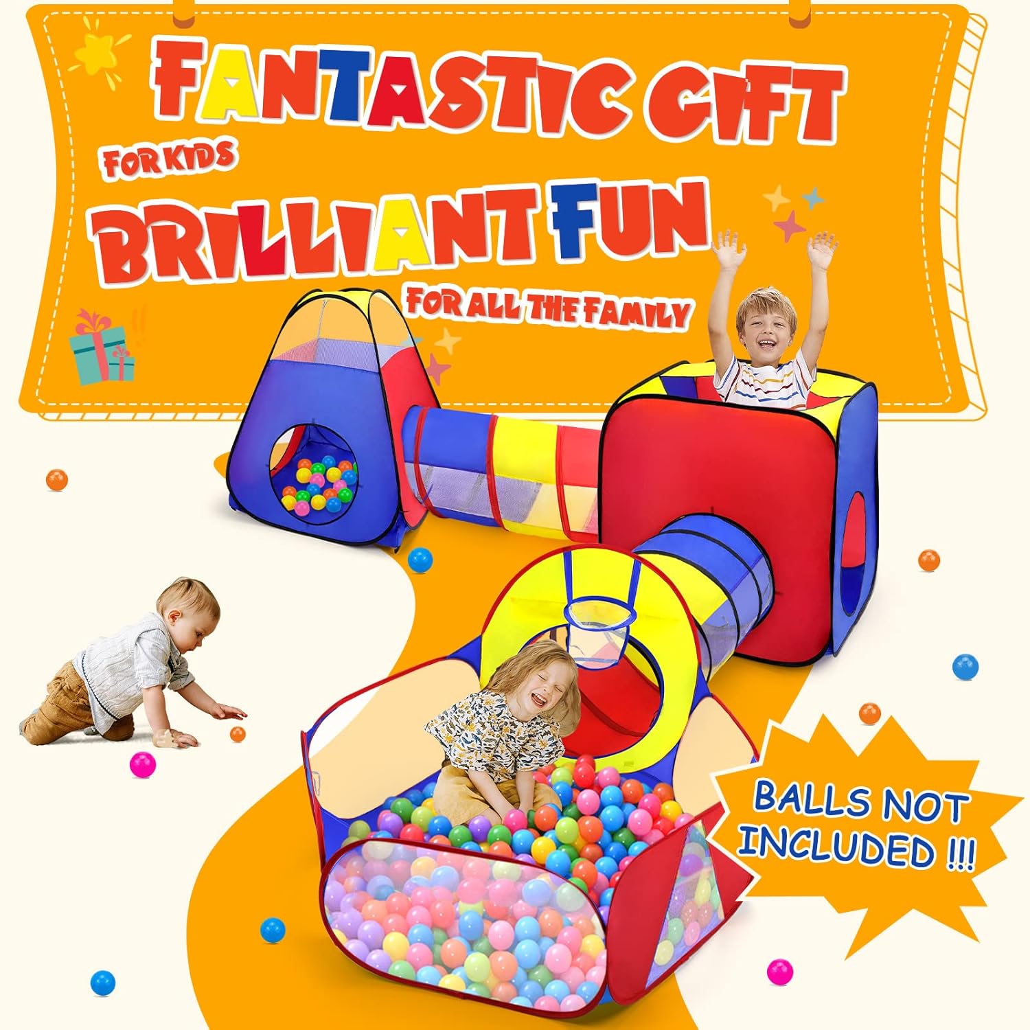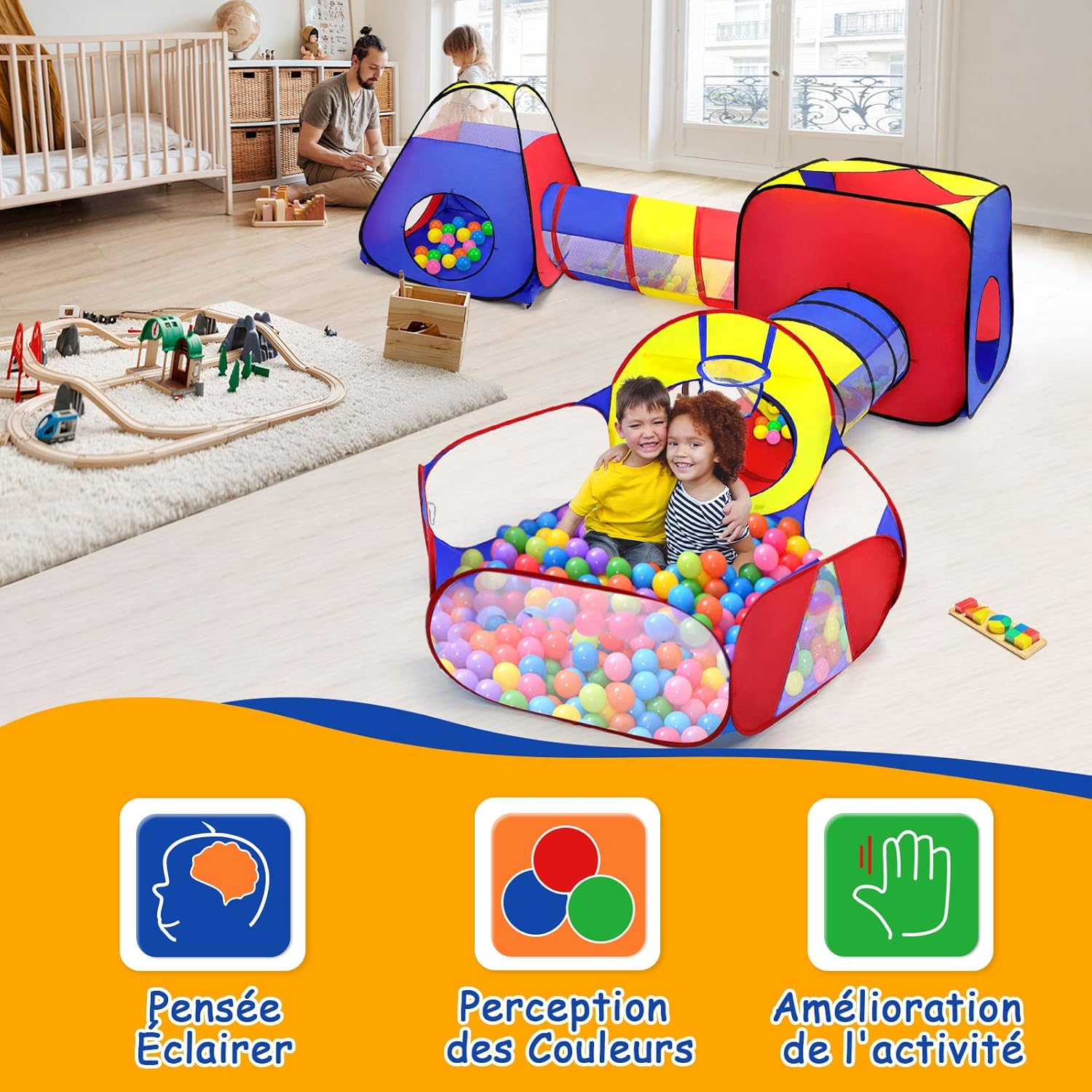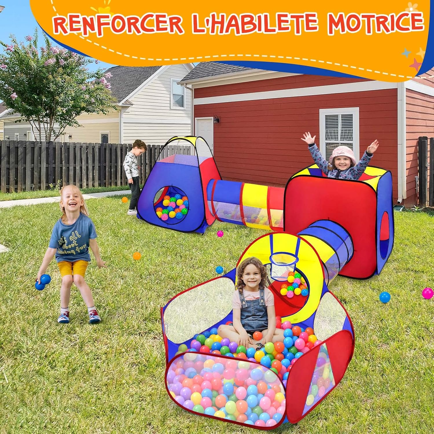 tente tunnel pop-up 5 en 1 pour enfants : maison pliable avec piscine à balles, idéale pour un cadeau d’anniversaire